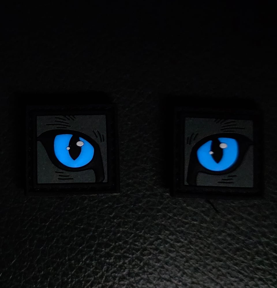 A pair of GITD cats eye patches that can be used for friendly identification or maybe just for some unique helmet flare.